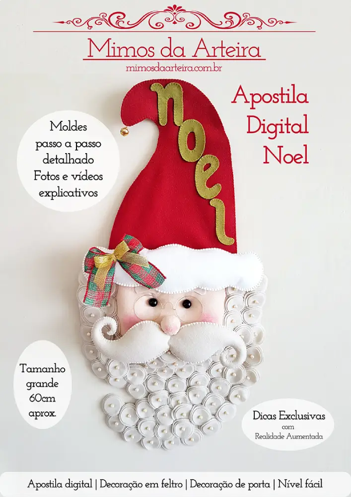 Transforme sua decoração de Natal com a exclusiva Apostila Digital Noel! Crie um enfeite encantador em feltro, no formato de um Papai Noel grande (aproximadamente 60 cm), perfeito para destacar portas, paredes ou ambientes especiais. A apostila inclui moldes precisos, instruções passo a passo super detalhadas e didáticas, além de fotos e vídeos explicativos para facilitar sua criação. Explore o mundo das cores e personalize seu Papai Noel com diversas opções de feltro, tornando sua peça única e sofisticada. Ideal para artesãos e apaixonados por decoração que desejam impressionar neste Natal! Bônus: dicas para montagem, sugestões de combinações de cores e certificado digital de participação.
